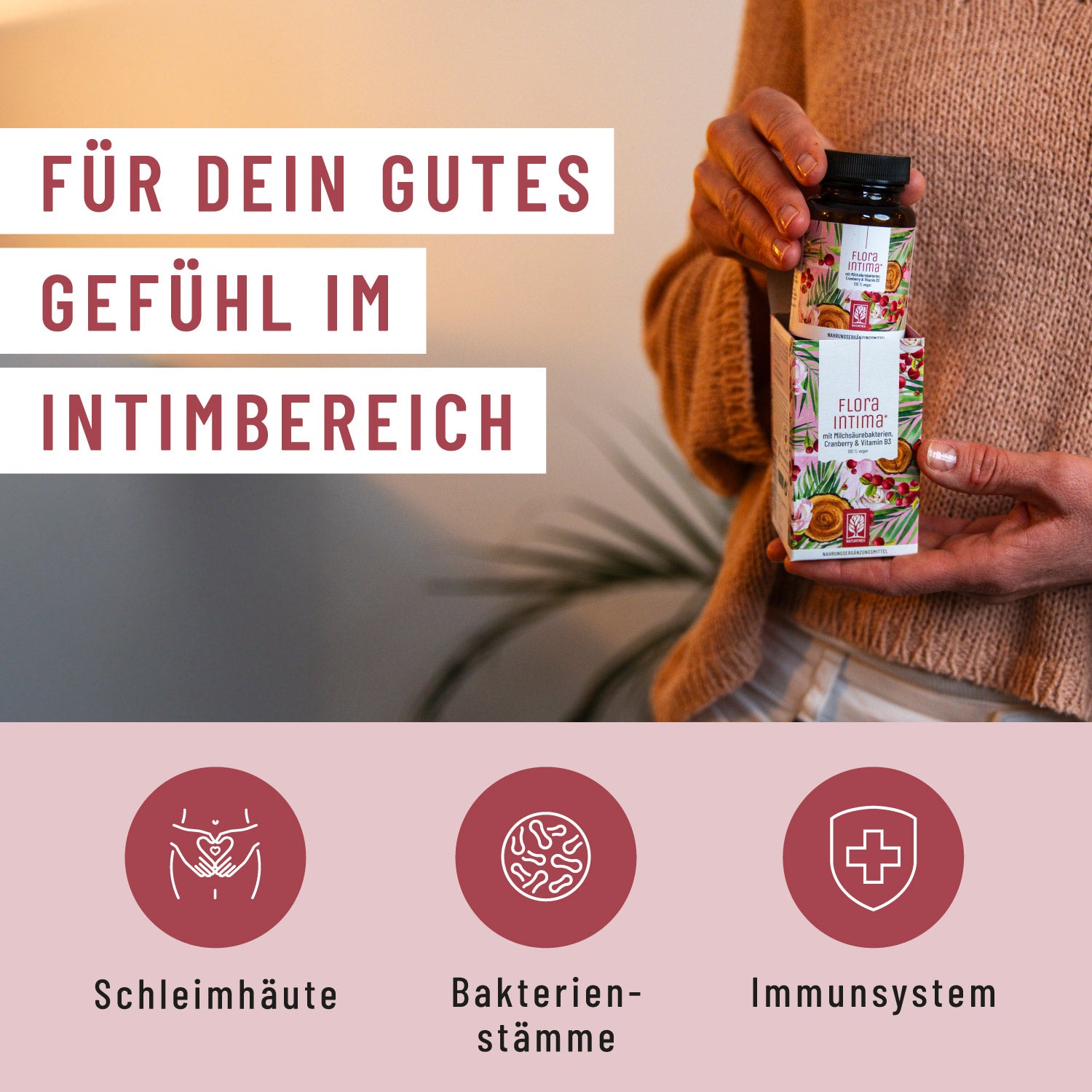 Eine sinnvolle Möglichkeit, Deine Scheidenflora mit Milchsäurebakterien zu unterstützen, ist der NATURTREU FLORAINTIMA-Komplex. Hier erhältst Du ausgewählte Milchbakterienstämme in Kapseln, die durch ihren speziellen Überzug magensaftresistent sind und so Deine Intimflora erreichen können.