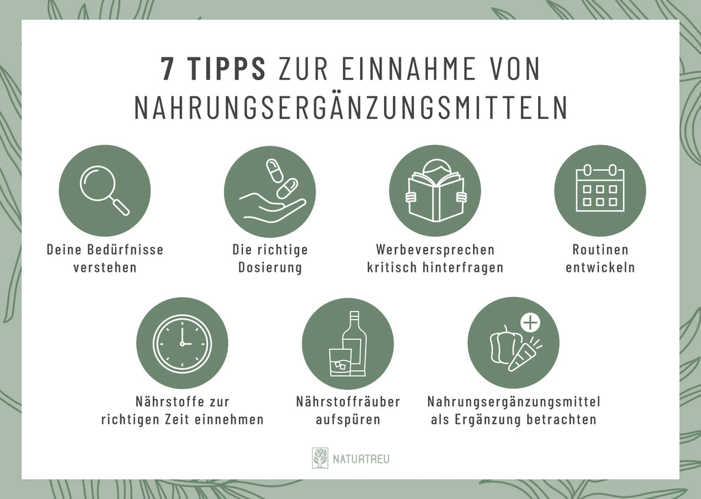 Außerdem erhältst du 7 Tipps, die du beim Kauf und der Einnahme von Nahrungsergänzungsmitteln berücksichtigen solltest, um deinen Körper optimal zu unterstützen.
