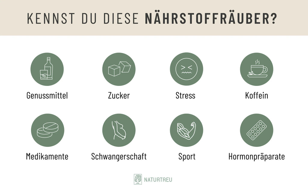 Hast du schon einmal von Nährstoffräubern gehört? Darunter versteht man bestimmte Lebens- und Genussmittel, Medikamente sowie Gewohnheiten, die es deinem Körper erschweren, Nährstoffe effektiv aufzunehmen.