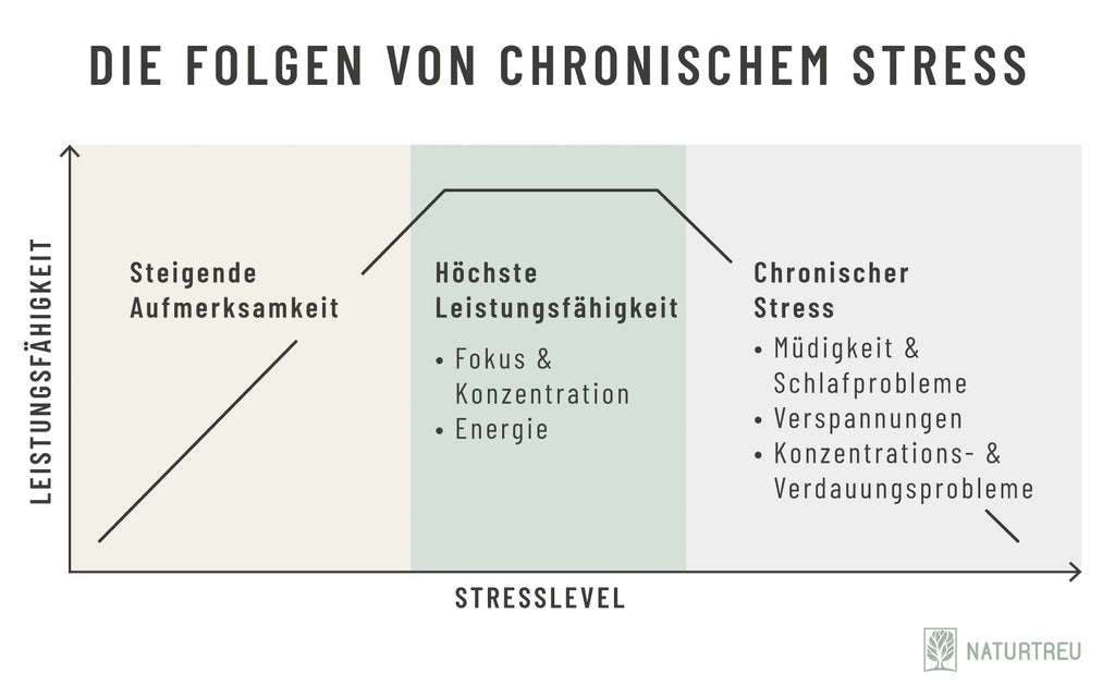 Der Alltag vieler Menschen wird heute allerdings häufig von chronischem Stress begleitet. Wenn sich der Körper über einen unnatürlich langen Zeitraum in Alarmbereitschaft befindet, werden die Stresshormone permanent ausgeschüttet²⁴.