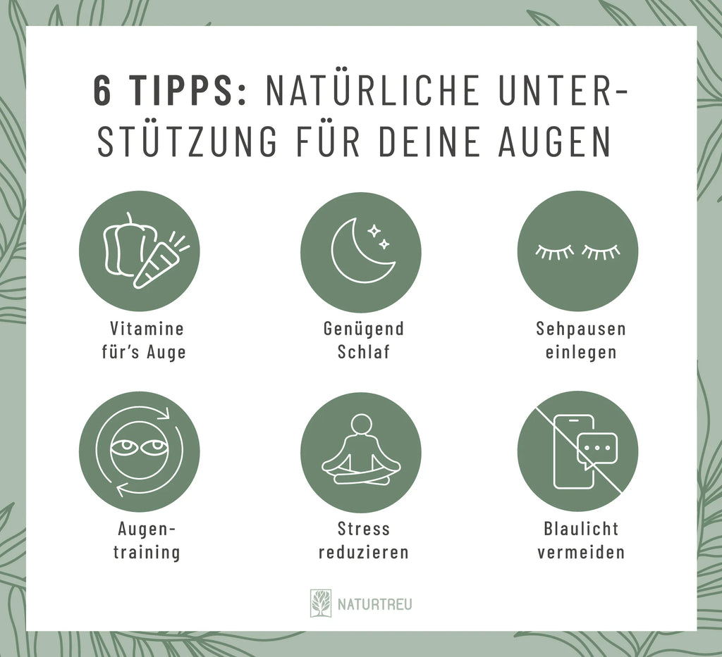 Im Folgenden stellen wir dir einige Tipps vor, die deine Augen unterstützen und dazu beitragen, deine normale Sehkraft möglichst lange zu erhalten.