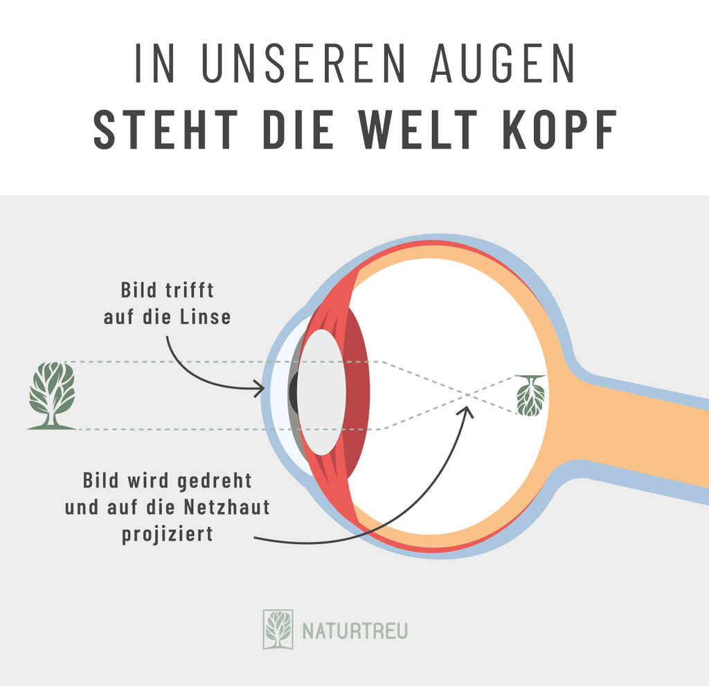 Das Bild in deiner Sehgrube steht eigentlich auf dem Kopf und ist damit seitenverkehrt. Dein Gehirn lernt aber frühzeitig, diese Darstellung zu korrigieren.