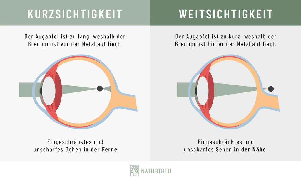 Dadurch entsteht das scharfe Bild nicht im Bereich der Netzhaut, sondern ein kleines Stück davor. Die Folge: Die Welt wird unscharf wahrgenommen.