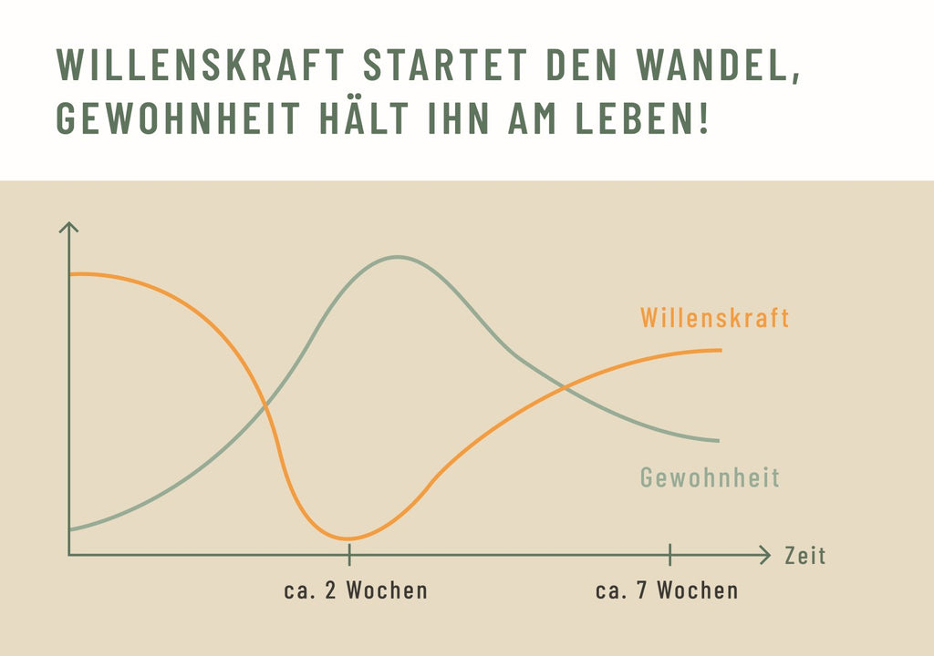 Gib dir ungefähr zwei Monate Zeit, um eine neue Gewohnheit aufzubauen. Anfangs kann es schwerfallen, aber nach und nach läuft sie fast automatisch ab. Mit der Zeit entstehen so Routinen, die Körper, Geist und Seele stärken und mehr Leichtigkeit in deinen Alltag bringen. Dabei sind Geduld, kleine Erfolge und Verständnis die besten Begleiter.