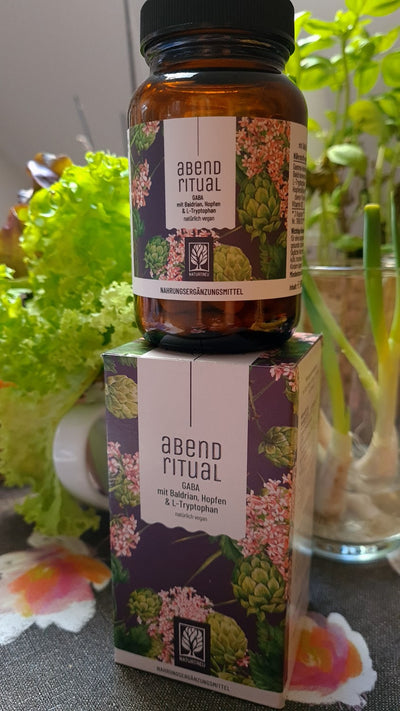 ABENDRITUAL ist ein durchdachter Komplex, denn er liefert GABA, L-Tryptophan (dieses wird im Körper in unser Schlafhormon Melatonin umgewandelt), Hopfen und Baldrian in einer einzigartigen Kombination.