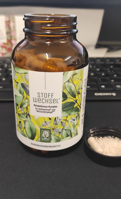 Bei STOFFWECHSEL handelt es sich um eine Spezialanfertigung zur Aufrechterhaltung des normalen Metabolismus¹. Die Rezeptur umfasst neben L-Carnitin, Cholin und ausgewählten Pflanzenextrakten vor allem das Spurenelement Chrom, das zur normalen Verstoffwechselung von Makronährstoffen und insbesondere auch zu einem normalen Fettstoffwechsel beiträgt¹'⁷.