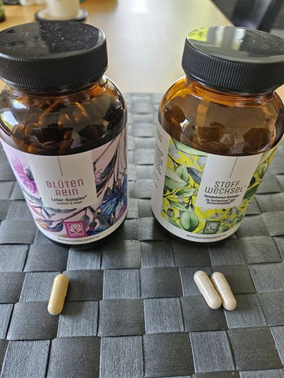 Mit dem BLÜTENREIN-STOFFWECHSEL-Paket haben wir ein synergistisch agierendes 2-Komponenten-Paket im Programm: Zum einen unterstützt es die Leber in ihrer Funktion², zum anderen trägt es zu einem normalen Stoffwechsel bei¹.