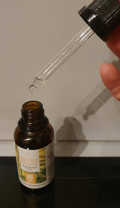 SONNENFREUND ist ein hochdosiertes Vitamin-D-Präparat in Tropfenform mit Vitamin K2. Als vollkommen veganes Produkt nimmt es eine Sonderrolle unter den Vitamin-D-Präparaten ein, denn normalerweise wird als Vitamin-D-Quelle Wollwachs von Schafen genutzt.