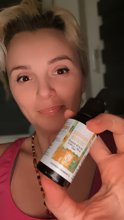 SONNENELIXIER ist also das ideale Nahrungsergänzungsmittel für dich, wenn du im Hinblick auf eine gute Vitamin D-Versorgung auf Nummer sicher gehen willst und kein Fan von Pillen oder Tabletten bist. Nimm alle drei Wochen ein paar Tropfen – das genügt.