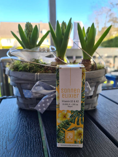 Mit unserer hochdosierten Vitamin D-Kur SONNENELIXIER lässt sich auf denkbar einfache Weise für längere Zeit ein ausreichend hoher Vitamin D-Spiegel herstellen: vier Tropfen einnehmen – fertig.