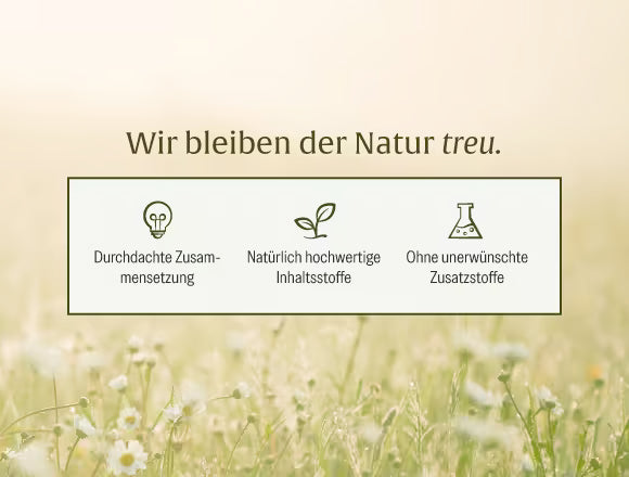 Unsere Produkte sind natürlich, pflanzlich, frei von unerwünschten Zusätzen und umweltschonend hergestellt. Mit größtem Respekt vor der Natur und ihrer ursprünglichen Kraft.
