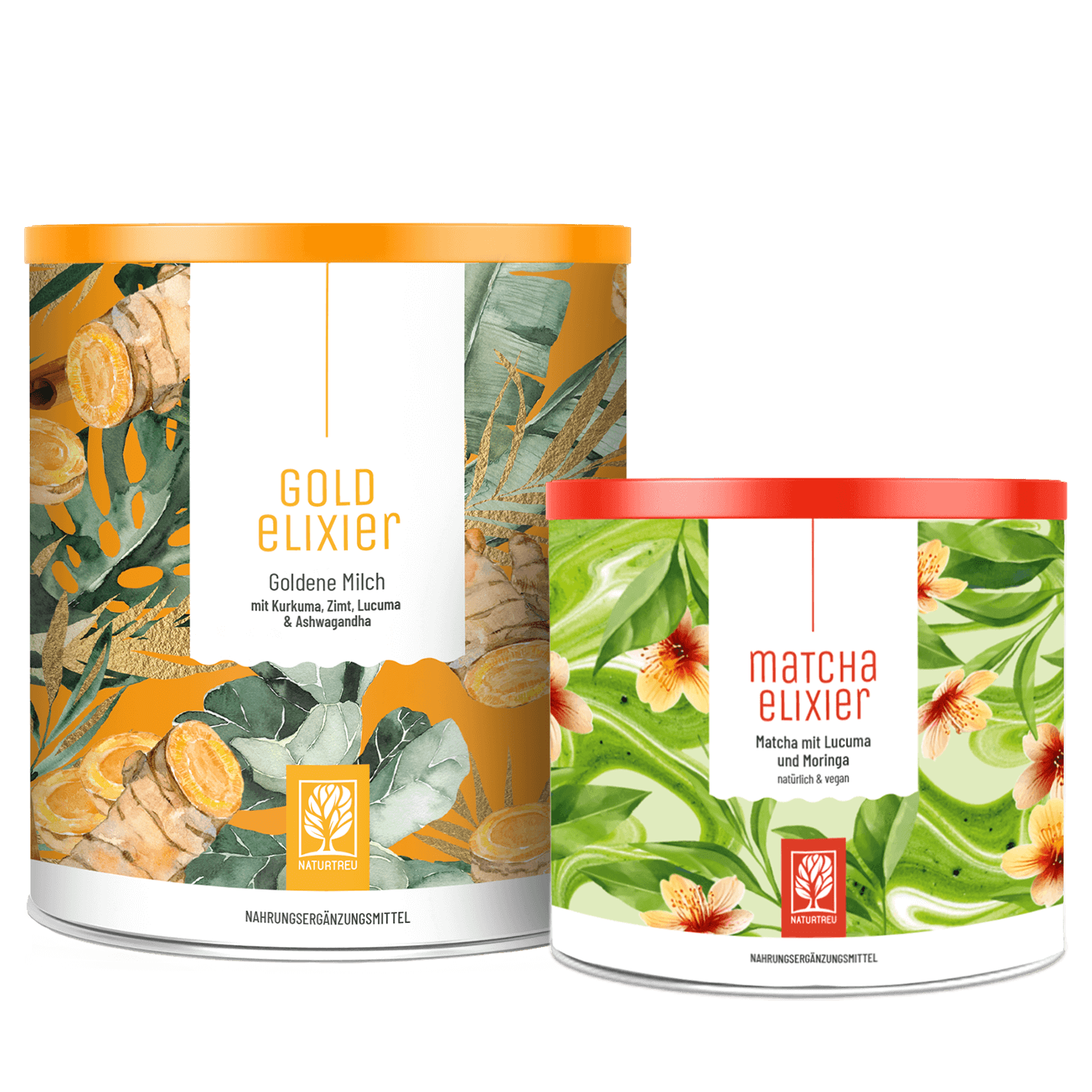 Zwei Rituale für deinen Tag: MATCHAELIXIER für einen bewussten Start in den Tag und GOLDELIXIER für wohltuende Auszeiten.