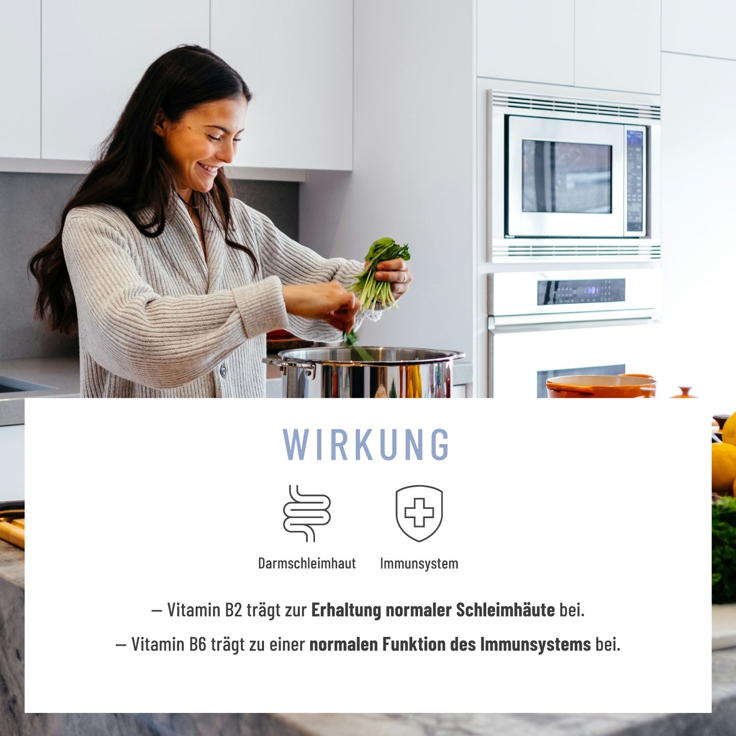 Angereichert mit Vitamin B2 unterstützt es nicht nur deine Darmschleimhaut3. Vitamin B2 trägt ebenfalls zu einem normalen Energiestoffwechsel4 und zum Schutz deiner Zellen vor oxidativem Stress5 bei. Akazienfaser dient als sanfte Ballaststoffquelle und rundet die harmonische Rezeptur ab.