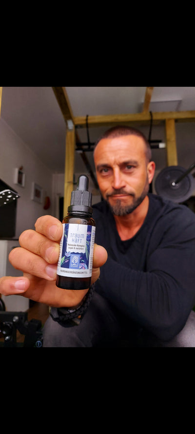 TRAUMHAFT ist ein Flüssigpräparat, das tropfenweise konsumiert wird. Die Zuführung ist also sehr sanft; es müssen keine Kapseln oder Tabletten geschluckt oder gar gekaut werden.