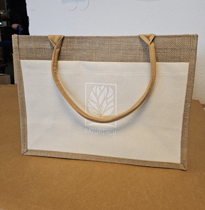 ROUTINETASCHE: Hochwertige Tasche mit Jutebesatz