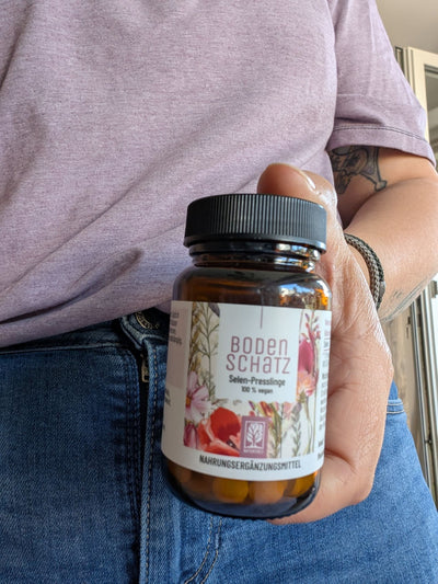 Unser BODENSCHATZ bietet dir hochdosiertes Selen in praktischer Presslingsform – bereits ein Pressling versorgt dich mit 200 μg bioaktivem Selen.