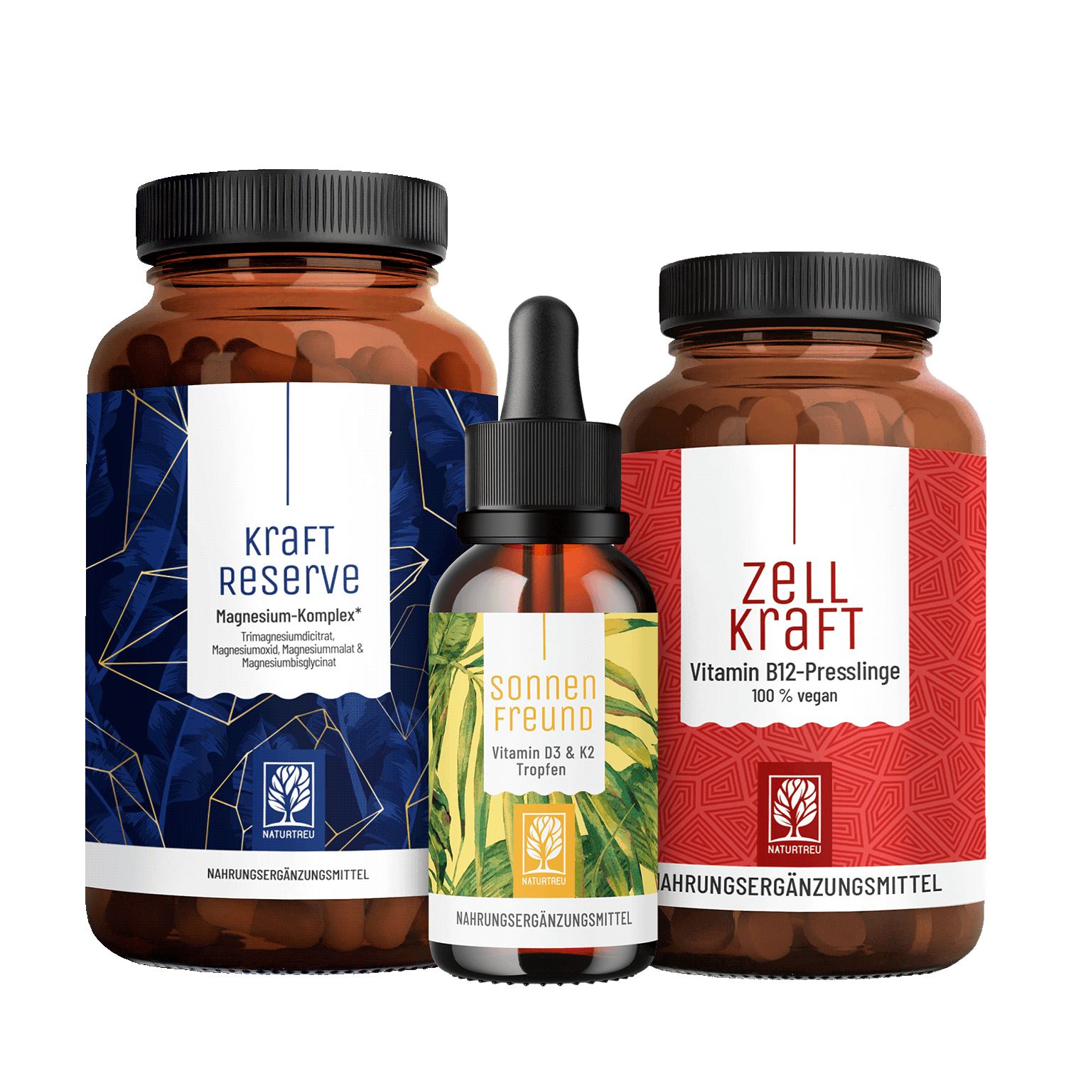 Hier kommt das Sonnenkraft-Paket ins Spiel. Mit unseren Bestsellern Sonnenfreund, Zellkraft und Kraftreserve liefert es dir Vitamin D3, K2, B12 und Magnesium – allesamt vegan, hochdosiert und mit einer hohen Bioverfügbarkeit.