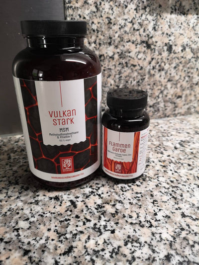 Genau dieser Schwefel liegt bei Gelenkbeschwerden oft nicht in ausreichender Menge vor⁷. Unser VULKANSTARK enthält hochdosiertes MSM. Dabei sind in jeder Tagesdosis (2 Presslinge) unglaubliche 2.000 mg MSM enthalten. Diese interessante Substanz liefert ungefähr 34 % Schwefel und kann dadurch die Schwefelkonzentration im Blut erhöhen⁷.