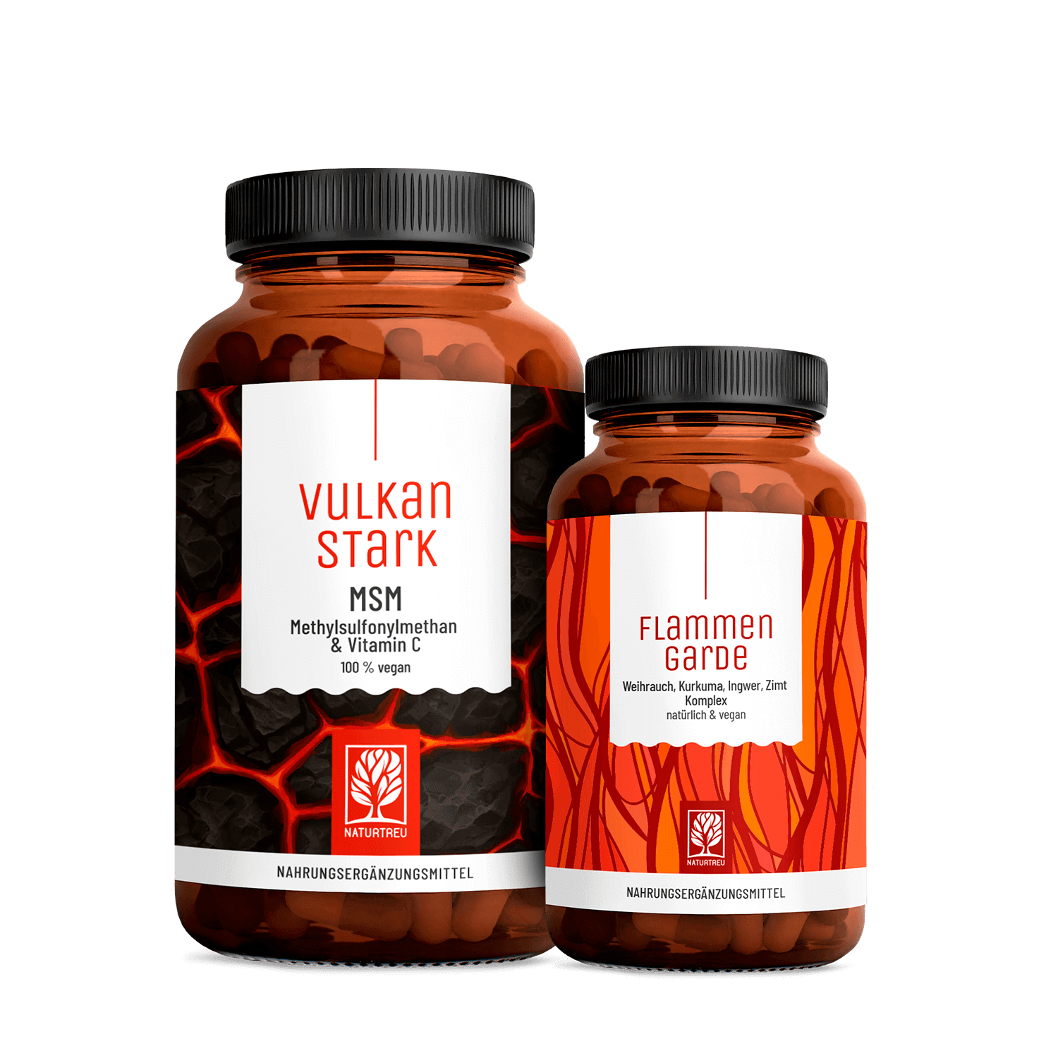 Gemeinsam ergeben FLAMMENGARDE und VULKANSTARK so ein Paket, das dich in deinem Alltag zuverlässig unterstützt und deinen Körper im täglichen Tempo begleitet.